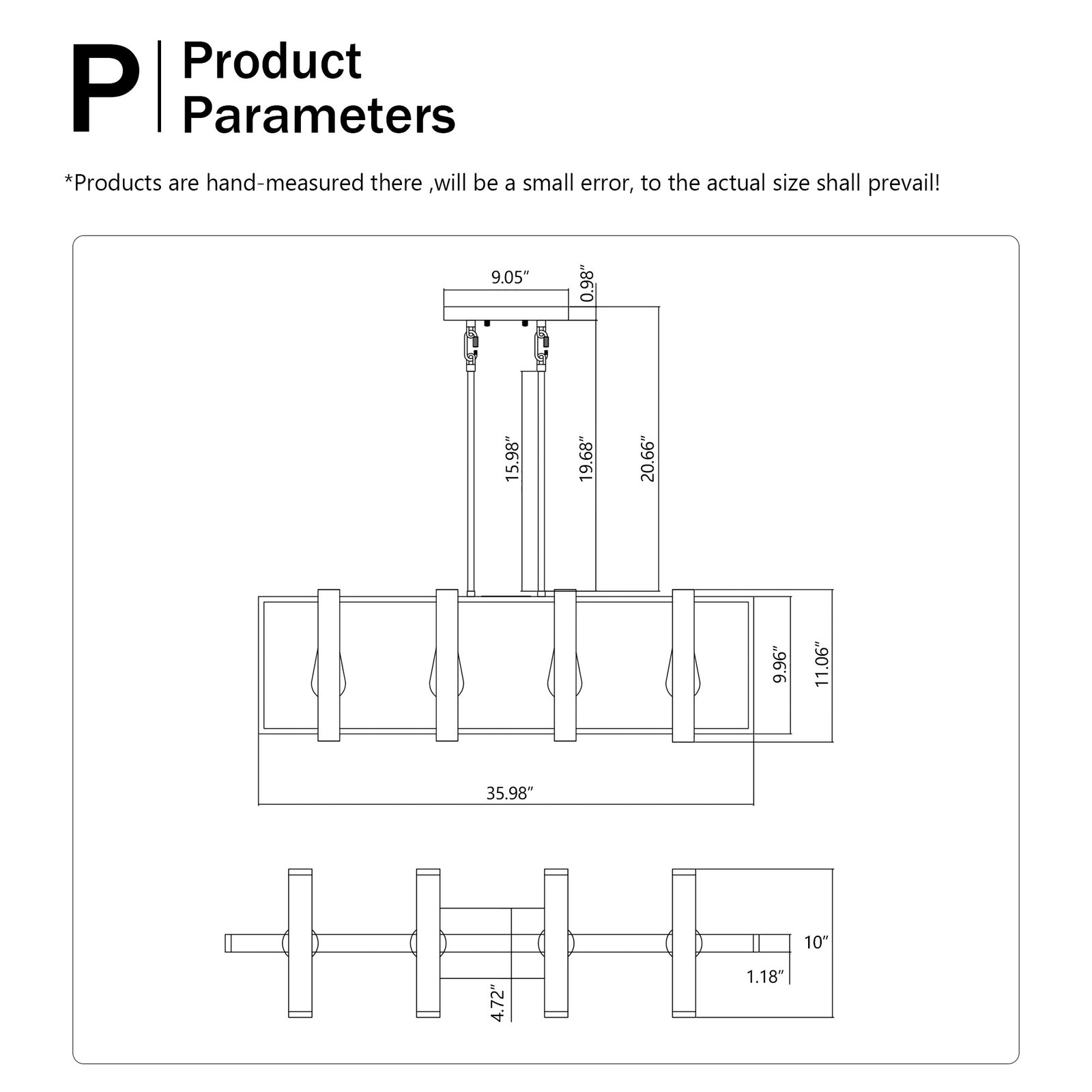 - Adjustable Height — The farmhouse chandelier comes with 2 hanging rods (2×16 inch). Maximum height of chandelier:36 inch.
