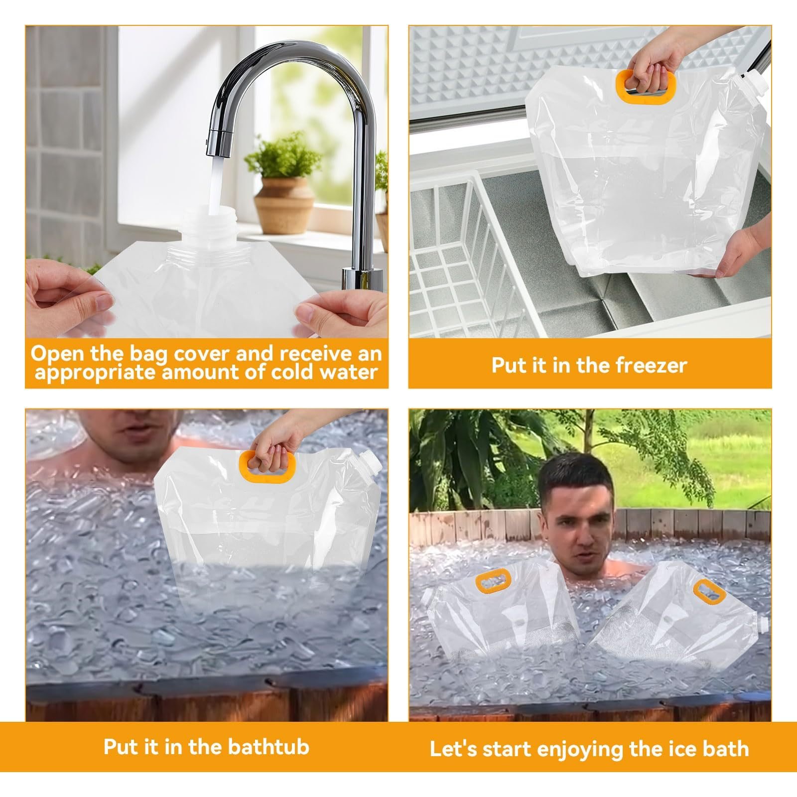 • Good Quality and Long- Lasting, Reliable Choice: Bathtub water bag is made of good-quality PET material to ensure that the cold plunge accessories not only has good durability, but also recyclable, reducing the burden. Safe contact with food-grade standards, so that you can enjoy convenience, cold plunge accessories are ideal choice for pursuing a wonderful life