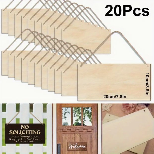 Unfinished Poplar Wood Sign With Rope – DIY Handmade Wooden Sign, Suitable For Artistic Decoration Of Walls And Doors.
